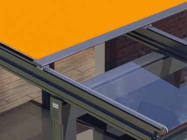 Breite bis 700cm, Ausfall/Tiefe bis 350cm, Dach bündig, Verglasung VSG 8, 10 oder 12mm oder Doppelstegplatten 16mm, mit integrierter Markise, Antrieb via Elektroantrieb, Tuch aus Acryl oder Polyester, Gestellfarbe aus 29 Standardfarben oder Sonderlacke