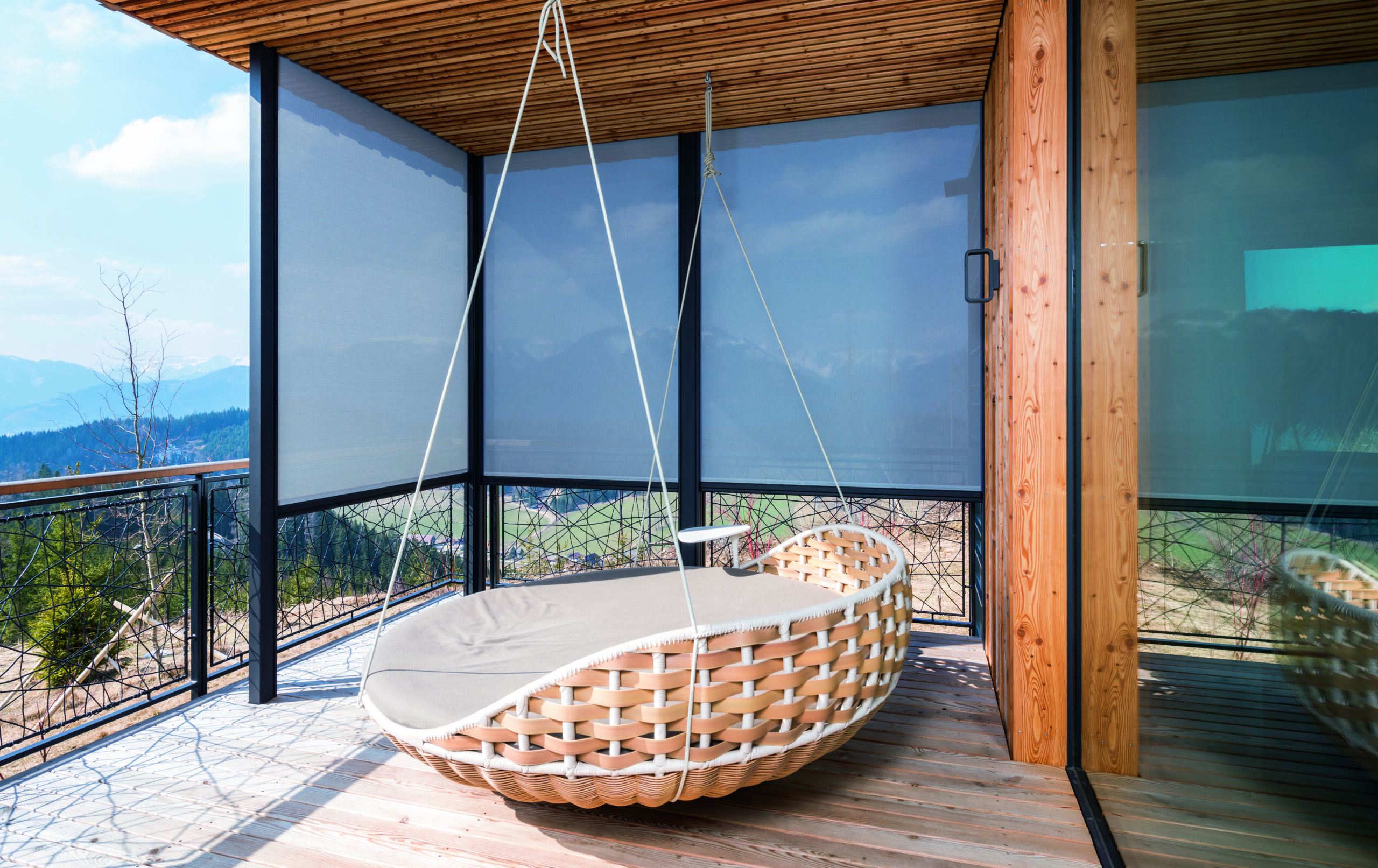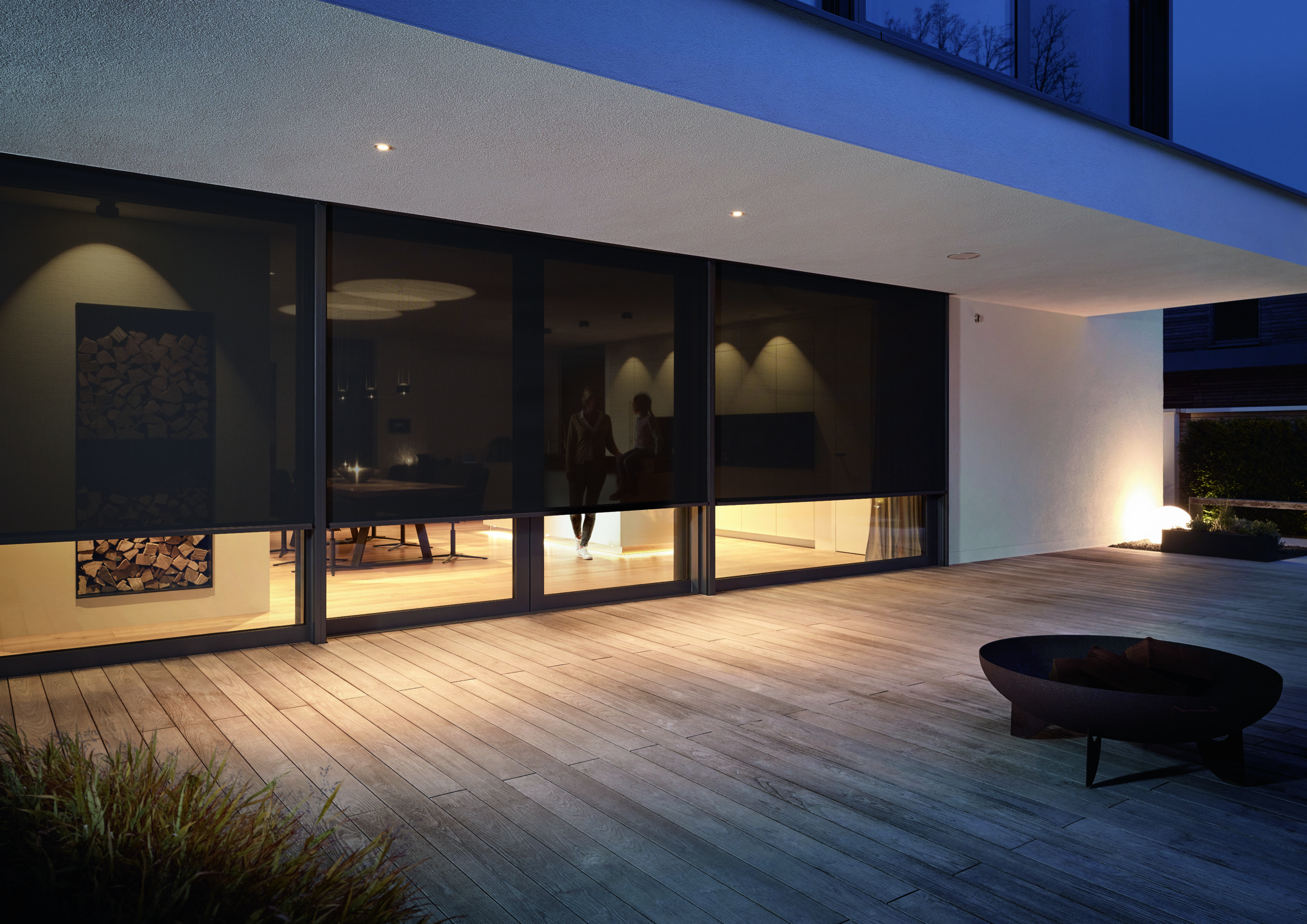 Ohne großen Aufwand vor dem Fenster montiert, reflektiert ein textiler Sonnenschutz die Sonneneinstrahlung um bis zu 70 %. Der Screen wird über die gesamte Höhe seitlich geführt und widersteht, auf Spannung gehalten, auch starkem Wind. Der zipSCREEN.2 ist serienmäßig mit Motorantrieb ausgestattet und auf Wunsch auch mit Funkbedienung erhältlich.